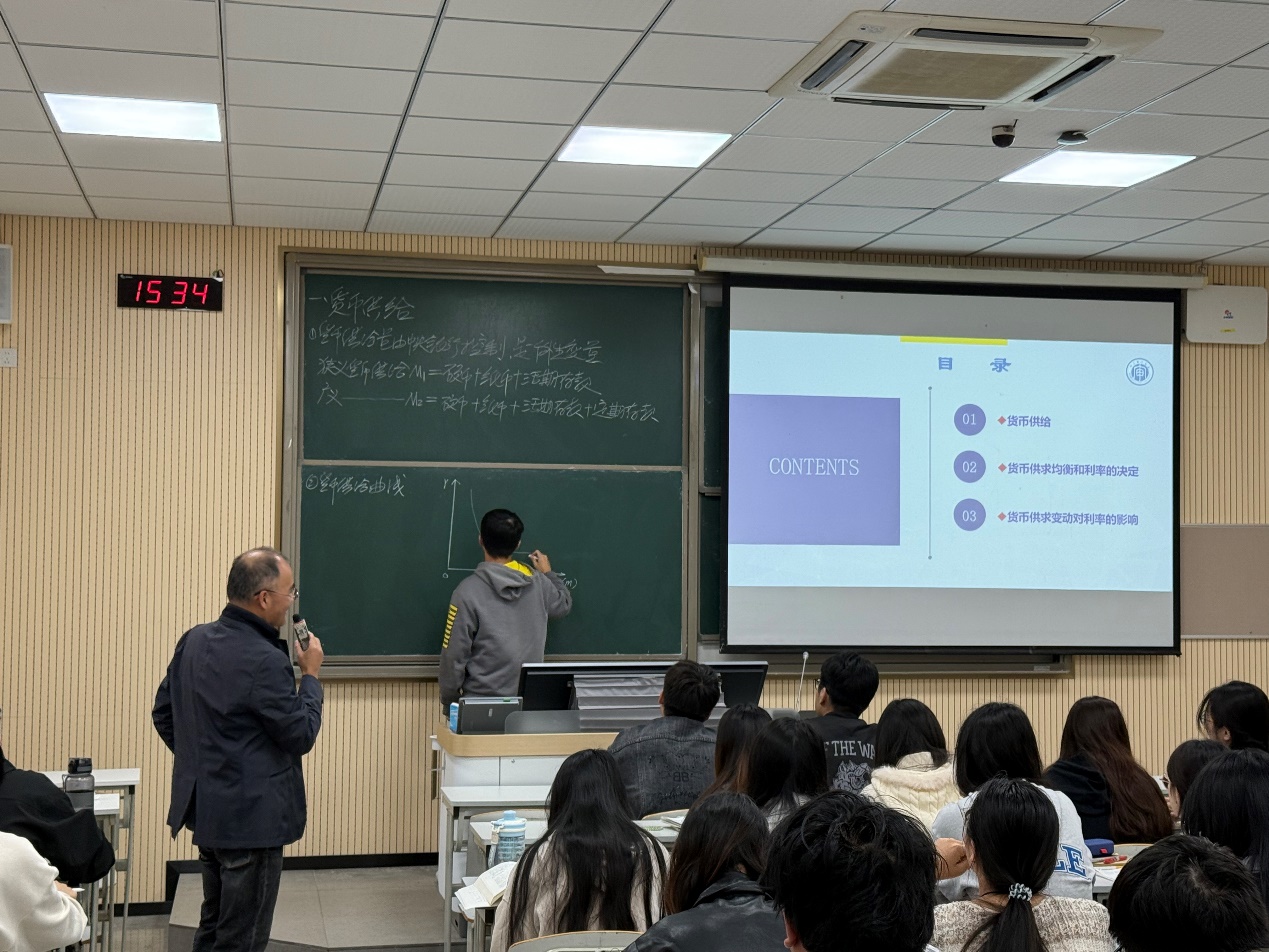 2025年10月20日,一场旨在深化课堂教学改革、提升育人实效的教学观摩活动于敏达楼205教室顺利开展。校督导庞艳红教授、澳门新葡游戏本科教学督导组成员和西方经济学课程组各位教师,共同参加了澳门新葡游戏刘智勇老师主讲的《宏观经济学》的观摩活动。